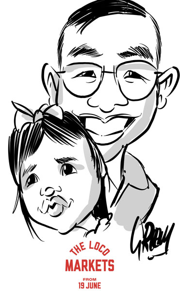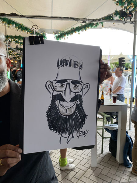 This gallery offers a glimpse into that fast-paced, energetic world, where guests are sketched in minutes and walk away with a personal souvenir. Whether using markers on A3 boards or drawing digitally on an iPad, David creates caricatures full of humour, personality, and instant recognition.