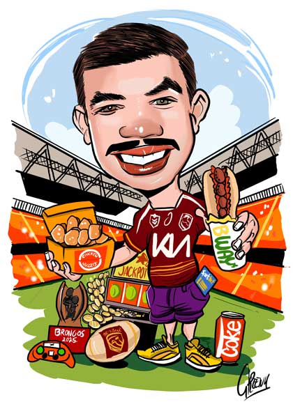 iPad digital caricature. Vibrant, full-color artwork – A fun, perfect alternative to a premium e-toon style caricature! Looking for something bold, vibrant, and packed with color? Drawn on the iPad Pro using quality software, for best results don’t print above A3, and don’t go overboard with your props.