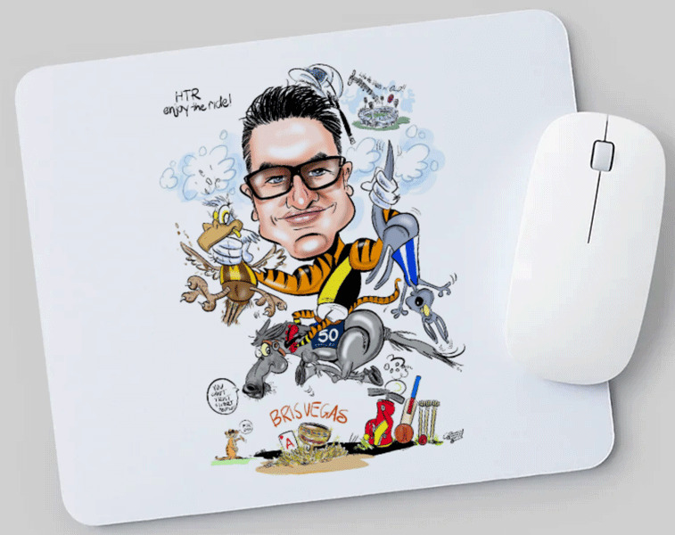 With our Novelty Gift Add-ons, we take your one-of-a-kind caricature and turn it into custom-printed keepsakes that are as fun as they are functional. Whether you're gifting a mate, a coworker, or yourself - these novelty items are guaranteed to get laughs, smiles, and second glances.